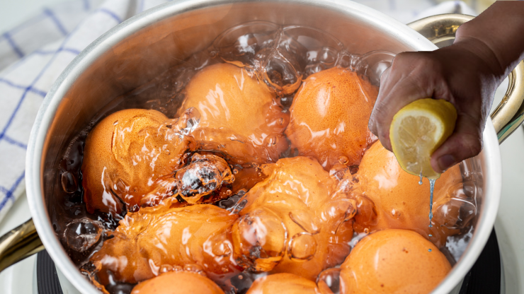 Per utilizzare questo trucco, basta aggiungere il succo di mezzo limone nell’acqua in cui intendi far bollire le uova. Assicurati che l’acqua copra completamente le uova. Fai bollire le uova come desideri – sia con il guscio morbido che ben cotte.