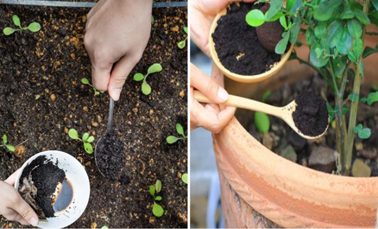 Puoi fare un “tè di fondo” – 2 cucchiai di fondo in 1 litro d’acqua, lasciato per 24 ore, poi usato per l’irrigazione alla radice.
