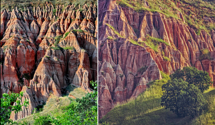 Râpa Roșie si trova nel centro della Romania, in Transilvania. Qui ci sono le regioni più belle e autentiche da visitare. Questo monumento naturale unico con rocce sedimentarie ripide erose di colore rossastro, scolpite naturalmente in forme di colonne, torri e piramidi merita sicuramente di essere visitato. Il nostro paese ha molti luoghi belli da visitare, ma purtroppo sono troppo poco promossi e poco conosciuti dai romeni.