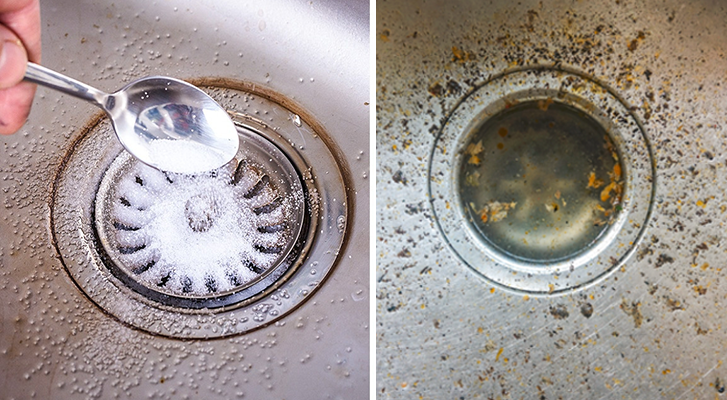 Risciacquare con acqua calda: Versare acqua calda nel lavabo per lavare via i residui decompositi e completare il processo di pulizia.