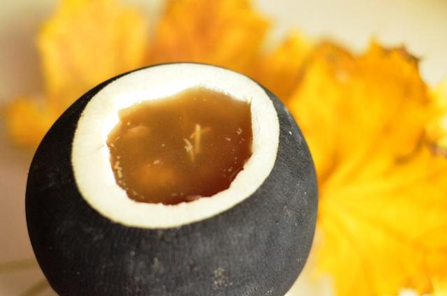 È importante che il ravanello rimanga in posizione verticale, poiché durante le 48 ore si formerà un liquido sottile, simile a uno sciroppo, e c’è il rischio che questo possa fuoriuscire. Dopo 2 giorni, versare lo sciroppo ottenuto in un barattolo di vetro. Scavare delicatamente le pareti del ravanello, che verranno aggiunte allo sciroppo. Chiudere ermeticamente il barattolo e conservarlo in un luogo fresco e buio della casa.