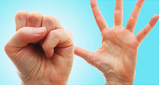 Stringere il pugno fa sì che i vasi sanguigni sotto le braccia si contraggano e che ci sia pressione sui palmi delle mani. Questa azione di contrazione bloccherà il sistema circolatorio, facendo diventare i palmi bianchi. Quando la mano diventa bianca, se riprende immediatamente il colore iniziale, significa che i tuoi vasi sanguigni sono ancora sani. Tuttavia, se ci vuole più di 10 secondi per recuperare, dovresti prestare attenzione, poiché potrebbe essere un segno di arteriosclerosi.